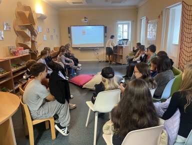 Ve středu 8. října měla 1.E možnost nahlédnout do chodu Dětského oddělení Jihočeské vědecké knihovny. Žáci se během programu seznámili s chodem knihovny a s možnostmi, které knihovna nabízí svým čtenářům. Naučili se pracovat s online vyhledávacím katalogem a zjistili, jak snadno najít knihy podle žánru, literárního druhu nebo věkové skupiny. Na závěr si mohli vyzkoušet vlastní vyhledávání a prohlédnout si vybrané knihy přímo v regálech. Návštěva byla přínosná a pomohla studentům lépe se orientovat ve světě literatury i v práci knihovníků.
