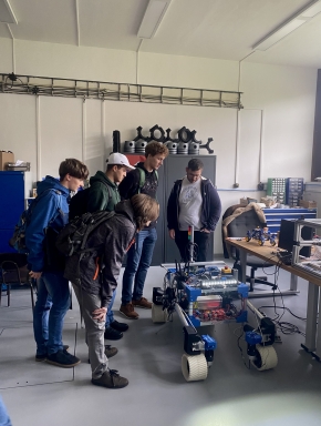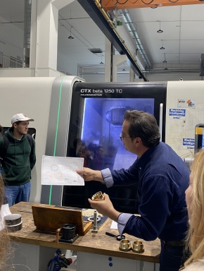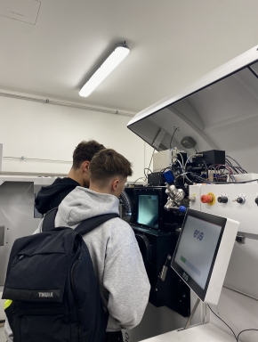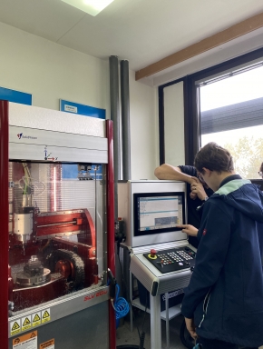 Dopolední program byl rozdělen do tří bloků. První blok probíhal v laboratoři RTI, kde jsme se seznámili s procesem vývoje výrobku. Ve druhém bloku nám byla představena technologie obrábění kovů a sami jsme si mohli vyzkoušet naprogramovat nástroj na frézování. Ve třetím bloku nám studenti univerzity představili vlastního sestrojeného robota, se kterým se účastní různých soutěží.