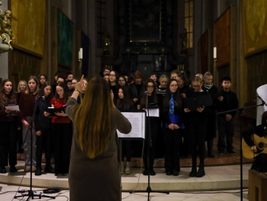 16. prosince 2025 se prostory Katedrály sv. Mikuláše rozezněly tóny a rytmy každoročního vánočního koncertu. Jako každý rok byla hlavní organizátorkou paní učitelka Pitrunová, která pro nás opět připravila krásný vánoční zážitek.
