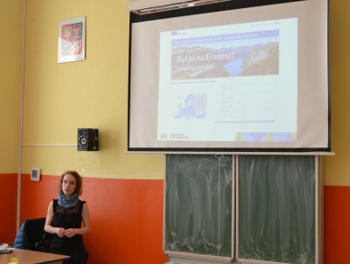 Workshop vedla dr. K. Marková z Eurocentra v ČB, která studentům představila možnosti, jak mohou vycestovat do zahraničí. Zaměřila se především na studijní, vzdělávací a dobrovolnické programy podporované EU.